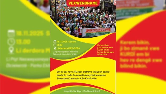 Înîsiyatîfa Civakî ya Ji Bo Zimanê Kurdî dê ji bo daxwazên gelê kurd ên der barê zimanê kurdî de bi îmze û beşdarbûna zêdetirî 750 sazî, dezgeh, platform, partî û derdorên kurd û demokratîk ên civakî yên li bakurê Kurdistan û Tirkiyeyê di 18ê mijdarê saet 13.00an de li Parka Ekîn Cerenê ya li navçeya Peyasa Amedê bi awayekî girseyî deklarasyoneke hevpar bi raya giştî re parve bikin.