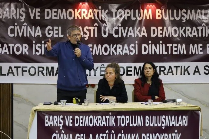 Li Sêrtê bi pêşengtiya Platforma Saziyên Demokratîk “Hevdîtina Aştî û Civaka Demokratîk” hat lidarxistin. Civîn, li eywaneke dawetan a bajêr hat lidarxistin. Nûnerên rêxistinên civaka sivîl û bi sedan welatî tev li bûn. Çetîn Arkaş, aktîvîsta TJAyê Ayla Akat Ata, ji parêzerên Buroya Hiqûqê ya Asrinê Sûzan Akîpa weke axiver tevli bûn. Di civînê de gelek caran dirûşmên “Bijî Serok Apo”,“Bê Serok jiyan nabe” û “Jin Jiyan Azadî” hatin berzkirin.