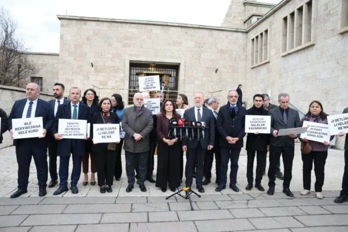 Koma Meclise ya Partiya Wekhevî û Demokrasiyê ya Gelan (DEM Partî) bi Serokwekîlên DEM Partiyê re tekildarî êrişên Hikûmeta Demkî ya Şamê yên li dijî taxên Şexmeqsûd û Eşrefiyê pêk tîne li ber deriyê meclise daxuyanî dan. Parlamenterên tevli daxuyaniyê bûn dovîzên li ser, “Bijî berxwedana gelê kurd”, “Ji komkujiya Helebê re na” û “Çareserî ne di êrişan de ye, di muzakereyê de ye” dinivisî hilgirtin. Di daxuyaniyê de Sezaî Temelî axivî û bi lêv kir ku ew li dijî êrişan bi hersin û wiha got: “Gelên Rojhilata Navîn careke din ji komkujiyê re rû bi rû ne. Heta niha di êrişên taxên Helebê de 10 welatiyan jiyana xwe ji dest da.”
