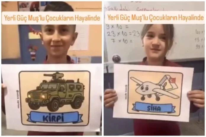 Li Dibistina Navîn ya Korkut Karakale Fatîh Kuç ya navçeya Korkutê ya Mûşê, mamosteyek bi hinceta “Hefteya amûr-alavên xwecihî” bi xwendekaran resmên milîtarîst da xêzkirin. Ew mamoste van resmên milîtarîst ku da xêzkirin li ser medyaya dîjîtal parve kir. Di resmên ku zarokan xêz kiriye de tê xuyakirin ku şiklên balafirên şer û alav-amûrên leşkerî xêz kirin e.