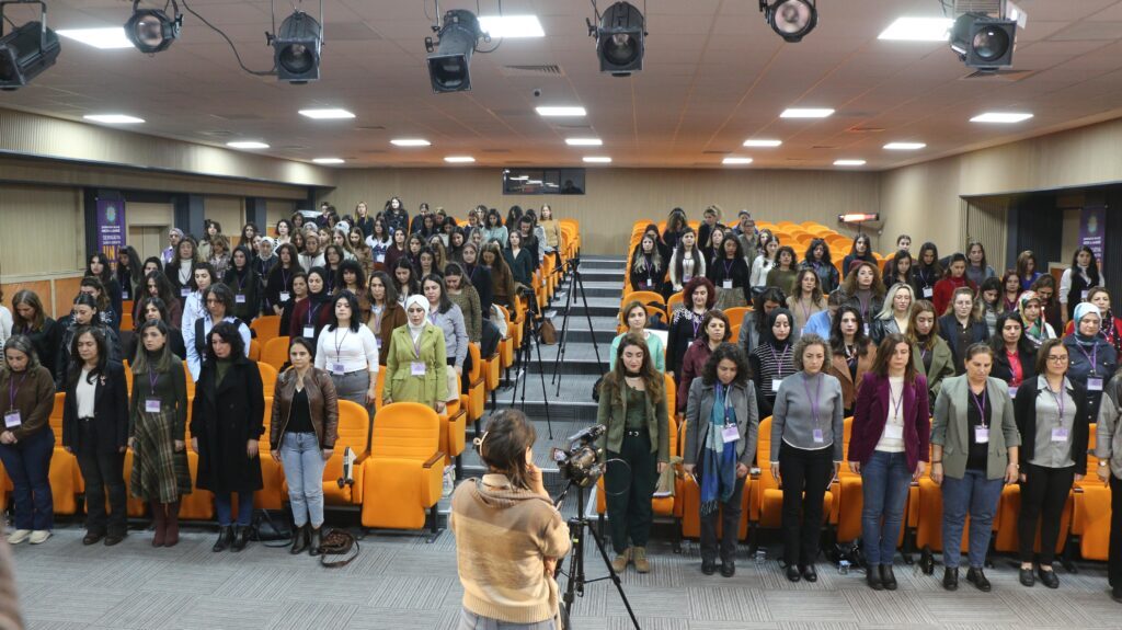 Serokatiya Daîreya Xizmêtên Jinan û Malbatê ya Şeredariya Bajarê Mezin a Amedê, di çerçoveya bernameyên 25ê Mijdarê Roja Têkoşîna Tundiya li Dijî Jinan a Navneteweyî de li eywana Şeredariya Bajarê Mezin a Amedê Komxebata, “Çareserî û Astengiyên Binyatî ku di Têkoşîna Bi Tundiya Arasteyî Jinan de Tên Dîtin” ku wê du rojan bidome li dar xist. Hevşaredara Amedê Serra Bucak, berdevka Meclîsa Jinan a DEM Partiyê Halîde Turkoglu, hevşeredarên navçeyên Amedê yên DEM Partiyê, saziyên jinan û gelek jin tev li konferansê bûn. Komxebatê bi deqîqeyek rêzgirtinê dest pê kir.