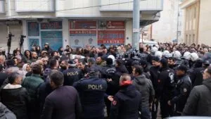 Girseya ke bi çepikan, tilîlîyan û sloganan resaye verê AZC Plaza, fîşegê hewayî teqnayî. Hemserekê Pêroyî yê DBP’yî Keskîn Bayindiro ke tîya de qisey kerd, hêrişê vera şarê kurdî şermezar kerdî. Bayindiro ke bal ant ser ke şarê kurdî, cinîyî, domanî, dayîkî û sivîlî binê hêrişê HTŞ’yîyan de yê, wina vat: