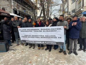 Edene de zî eşkerayîyêke ameye dayene û Hemserekê Rêxistina Bajarî ya DEM Partî Seyfettîn Aydemîrî çalakîye de qisey kerd û dîyar kerd ke Rojawan nêno teslîmgirewtene. Seyfettîn Aydemîrî veng da komelê mîyanneteweyî ke berpirsîyarîye bigêro xo mil û paştîdayîşê bi şarê kurdî pîl bikerê. Eşkerayîye ra dima girse bi berzkerdişê sloganan rayra şî.