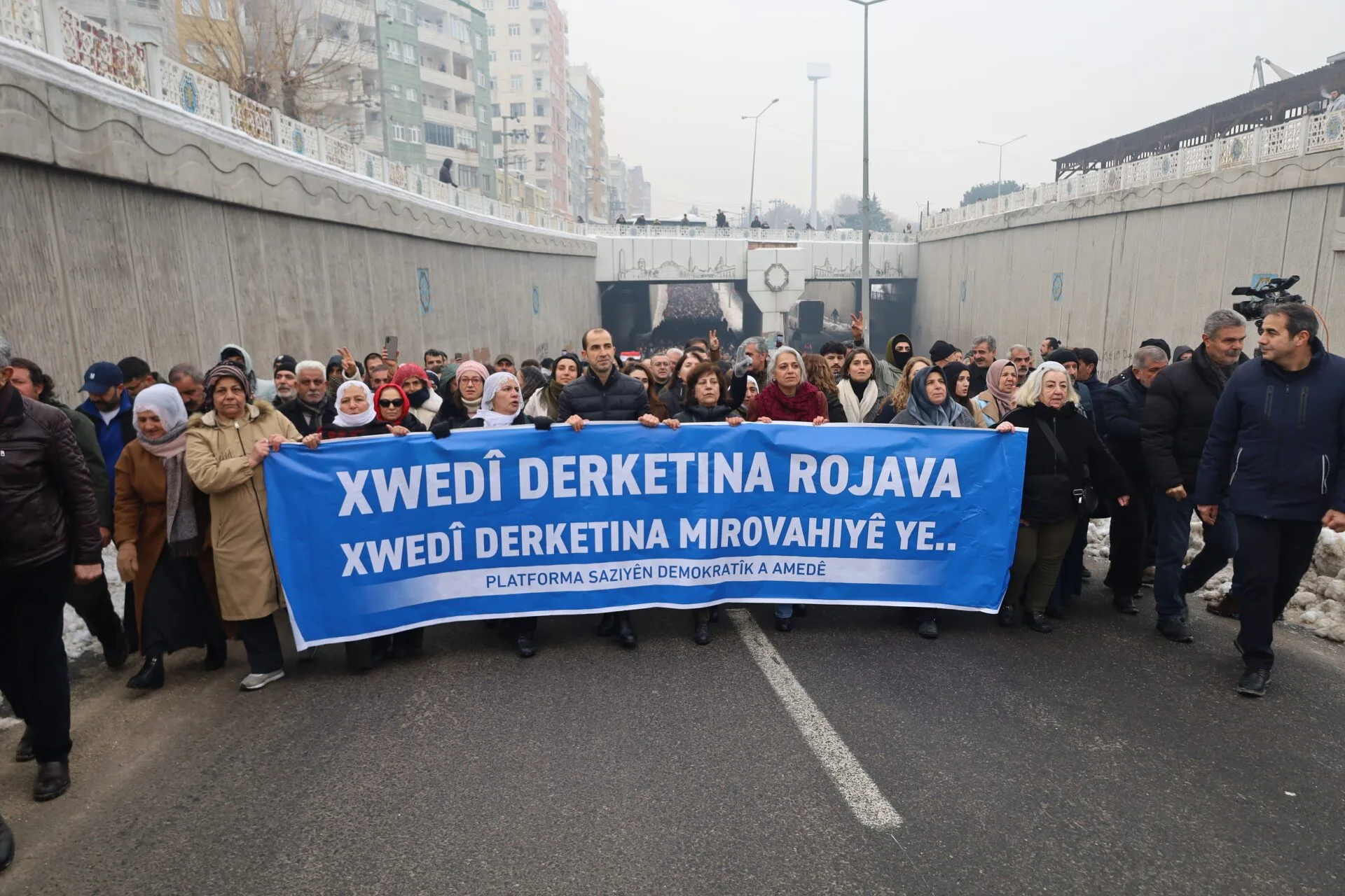 Girseya ke bi pankartê “Xwedîderketina Rojawan xwedîderketina mirovahiyê ye” û posterê pîlî yê Rayberê Şarê Kurdî Abdullah Ocalanî rayra şîyêne, rayraşîyayîşî de diruşmê “Bijî berxwedana Rojawan”, “Bijî berxwedana Şêxmeqsûd”, “Jin, jiyan, azadî”, “Bijî Serok Apo”, “Amed wayîrê Rojawan vejîye” û “Qatil HTŞ, hemkar DAIŞ” berz kerdî.
