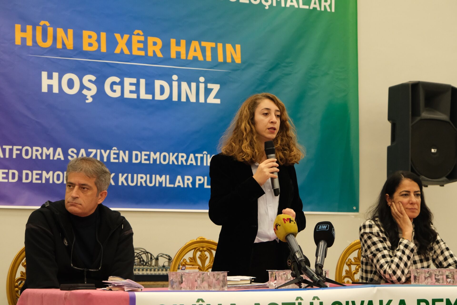 Platforma Saziyên Demokratîk ên Amedê li eywana dawetê ya Sezîkê ya navçeya Farqînê ya Amedê civîna “Aştî û Civaka Demokratîk” li dar xistin. Nûnerên DEM Partiyê, Aktîvîstên TJAyê, nûner û rêveberên DBPê, endamên Dayikên Aştiyê, Komeleya 78an, TUAY-DER, MEBYA-DER, MED-DER, tevî nûnerên rêxistinên siyasî û civaka sivîl beşdarî civîna gel bûn. Di hevdîtinê de bi domdarî diruşmeyên “Bijî Serok Apo” û “Şehîd namirin” berz kirin. Bername ji bo kesên ku di têkoşîna azadiyê de jiyana xwe ji dest dane bi deqeyek rêzgirtinê dest pê kir. Çetîn Arkaş ê ku 33 sal di zindanê de ma, siyasetmedar Ayla Akat Ata û parêzera Buroya Hiqûqê ya Asrinê Raziye Ozturk beşdarî civînê bûn.