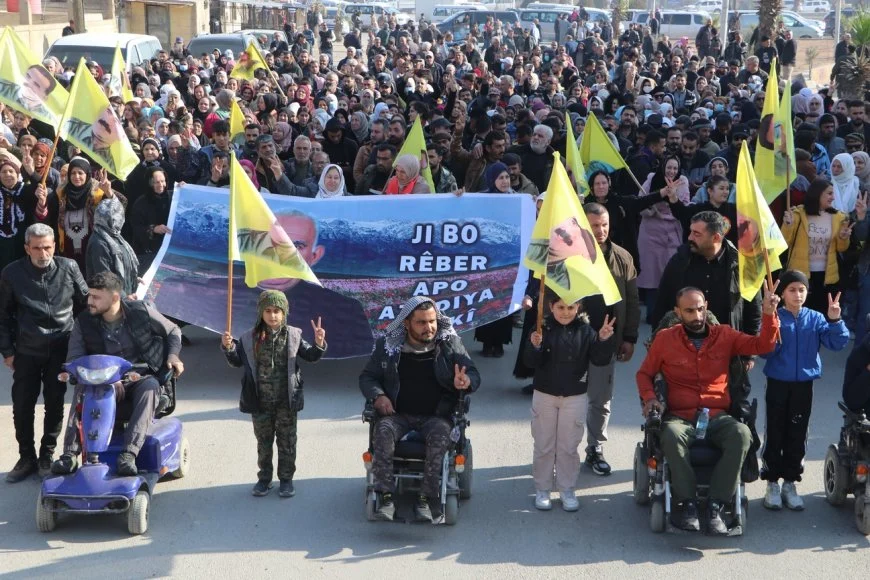 Li Hesekê bi hezaran kes bi daxwaza azadiya fîzîkî ya Rêberê Gelê Kurd Abdullah Ocalan meşiyan û gotin: “Ji bo azadiya Rêber Apo em ê timî li qadan bin."