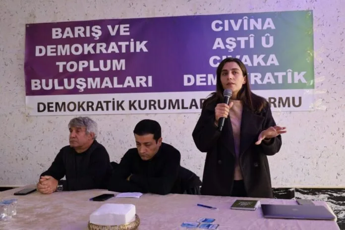 Piştî axaftina Gulistan Sonuk civîn ji çapemeniyê re girtî berdewam kir.