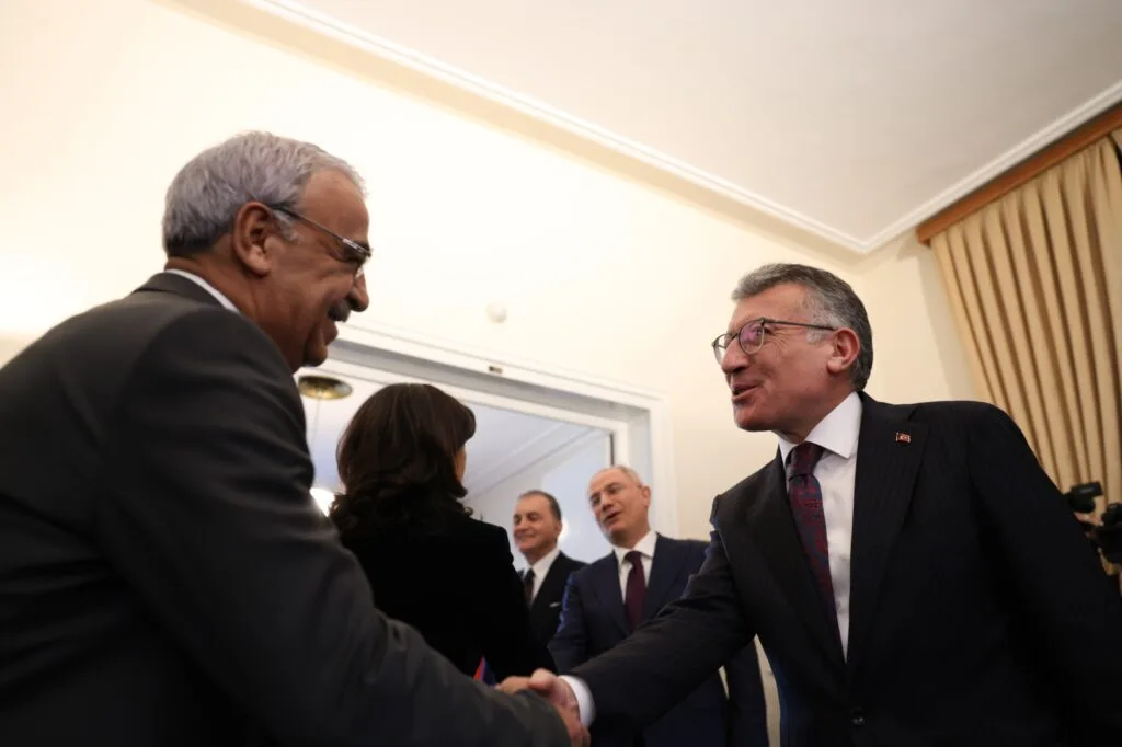 Hevdîtina Heyeta DEM Partiyê ya Îmraliyê di çerçoveya pêvajoya Aştî û Civaka Demokratîk de serdanên xwe yên li gel partiyên siyasî didomîne. Endamên Heyetê parlamenter Pervîn Buldan, Mîthat Sancar û endamê Buroya Hiqûqê ya Sedsalê Faîk Ozgur Erol li Meclîsê serdana heyeta AKPê kir. Heyeta Îmraliyê ji aliyê Serokê Koma AKPê Abdullah Guler, Berdevkê AKPê Omer Çelîk, Serokwekîlê Serokê Giştî yê AKPê Efkan Ala ve hate pêşwazîkirin.