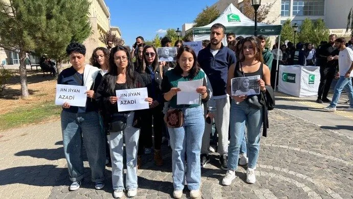 Piştî daxuyaniyê xwendekaran dirûşmên “Gulistan Doku li ku ye?”, “Jin, jiyan, azadî”, “Kiryaran neparêze, bidarizîne”, “Ji bo Rojînê edalet” berz kirin û heta pirtûkxaneya zanîngehê meşiyan.