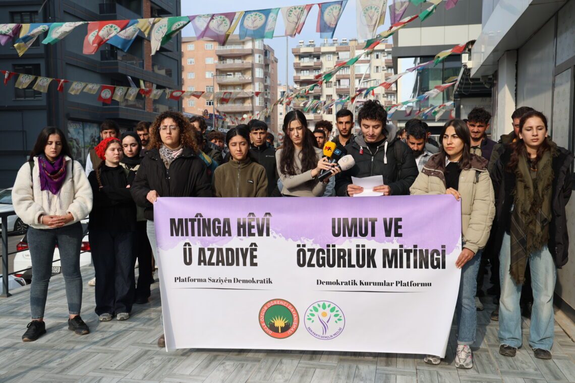 Metna Kurdî ya daxuyaniyê endama Meclîsa Ciwanan a DEM Partiyê Bêrîvan Kocaoglû xwend. Metna bi Tirkî jî Diyar Soyal xwend.