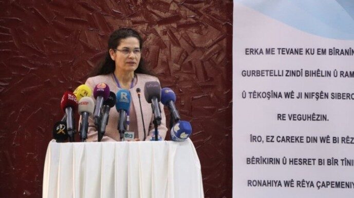 Îlham Ehmed ku di konferansa YRJê de axivî, got: “Meseleya Sûriyeyê gihiştiye Washingtonê. Em piştgirî didin rakirina pêkanînan, lê divê dengê jinan were bihîstin.”