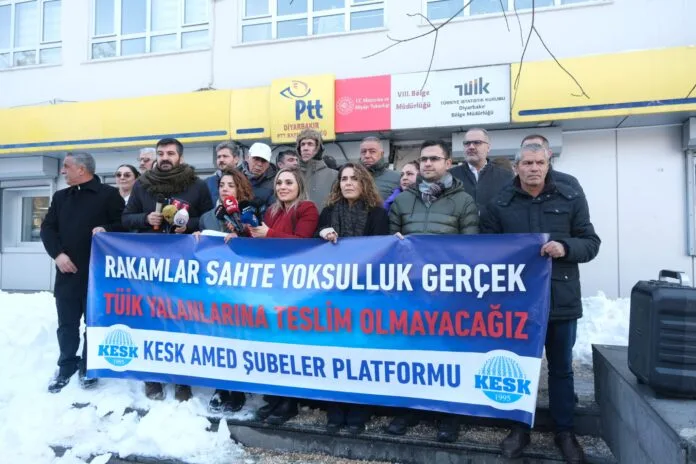 Bi pêşengiya Platforma Şaxan a Konfederasyona Sendîkayên Kedkarên Cemaweriyê (KESK) ya Amedê têkildarî zêdebûna enflasyonê li pêşiya avahiya TUÎKê ya li navçeya Sûrê ya Amedê daxuyanî da çapemeniyê. Di daxuyaniyê de endam û rêveberên şaxên girêdayî KESKê, parlamentera DEM Partiyê ya Amedê Adalet Kaya û gelek kes tev li daxuyaniyê bûn.