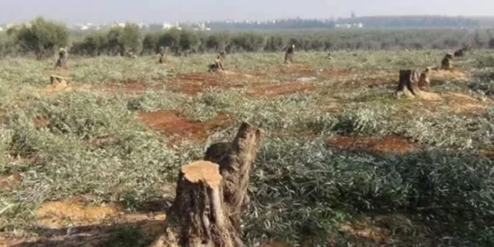 Rexistinê da zanîn ku 31ê cotmehê, komeke girêdayî Tirkiyeyê di 2 rojan borî de bi kêmanî 150 darên zeytûnan talan kirin û şikandin. Rêxistinê da zanîn ku li ser rêya gundê Heyat-Deşta Ketixê yên gundewarên Efrînê derdora 150 darên zeytûnan ên şêniyê bi navê Şukrî Dimilî talan kirin û şaxên wan şikandin.