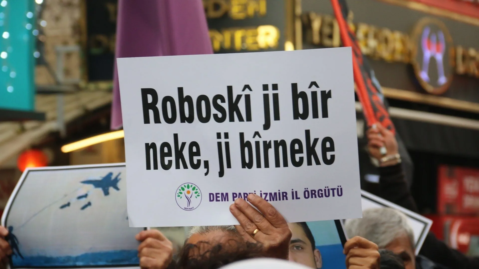 Platforma Ked û Demokrasiyê ya Îzmîrê tevî endam, rêveber û nûnerên saziyên sivîl û partiyên siyasî bi boneya 14emîn salvegera Komkujiya Roboskiyê ku di 28ê Kanûna 2011an de 34 welatî bi balafirên şer hatî kuştin, li ber Navenda Çandê ya Turkan Saylanê daxuyanî da û piştî daxuyanî ber bi qada Gundogduyê ve meşiya û qurnefîl avêt deryaya Egeyê. Platformê di çalakiyê de pankarta “Kesên li Roboskiyê hatî kuştin jî kujerên Roboskiyê jî em ji bîr nakin” vekirin.