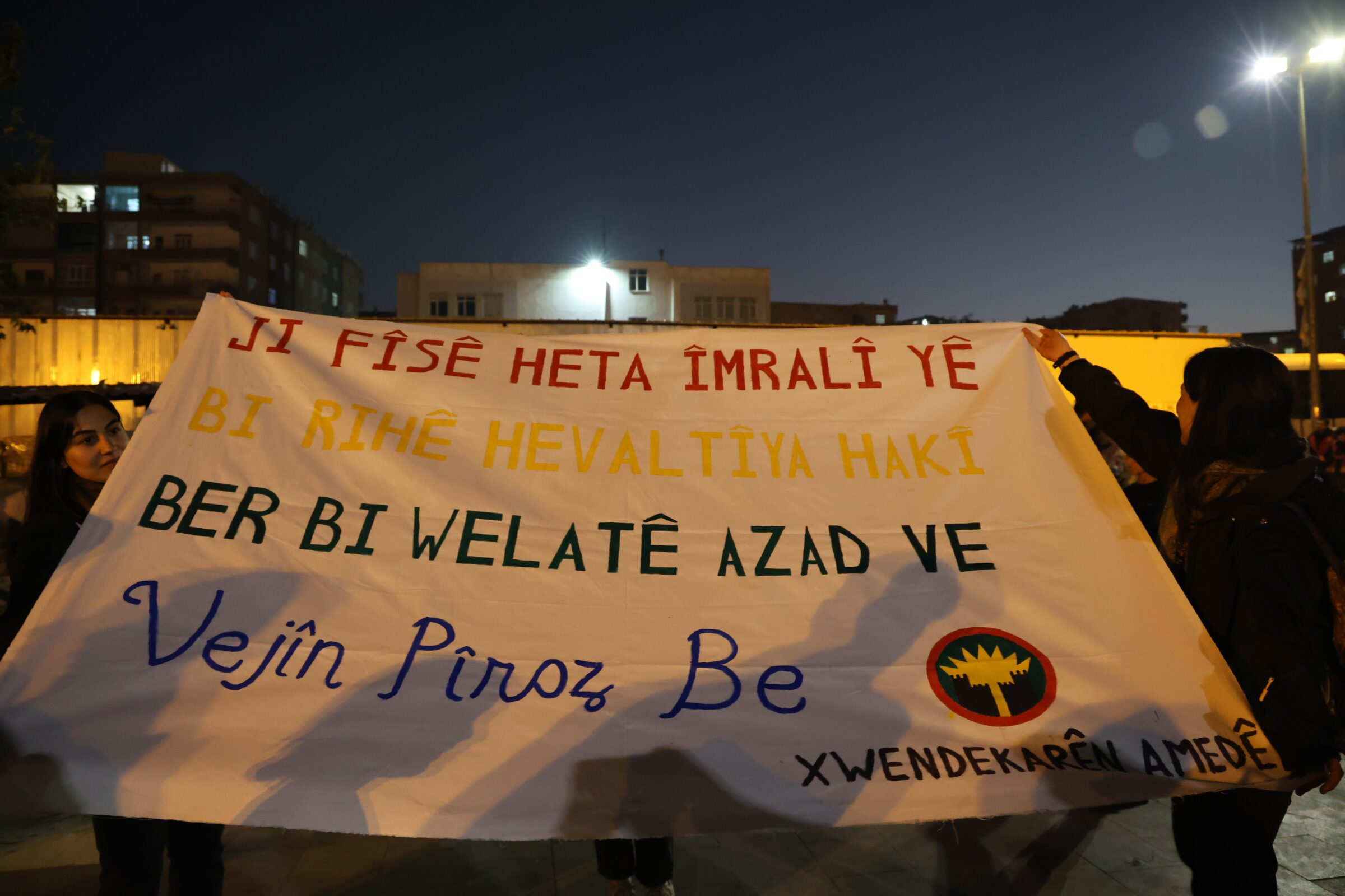 Piştî axaftinê xwendekarên Amedê bi meşelayan û pankarta “Ji Fîsê heta Îmraliyê bi rihê hevaltiya Hakî ber bi welatê azad ve, vejîn pîroz be” vekirin. Di çalakiyê de dirûşmeya “Bijî Serok Apo” hat berzkirin.