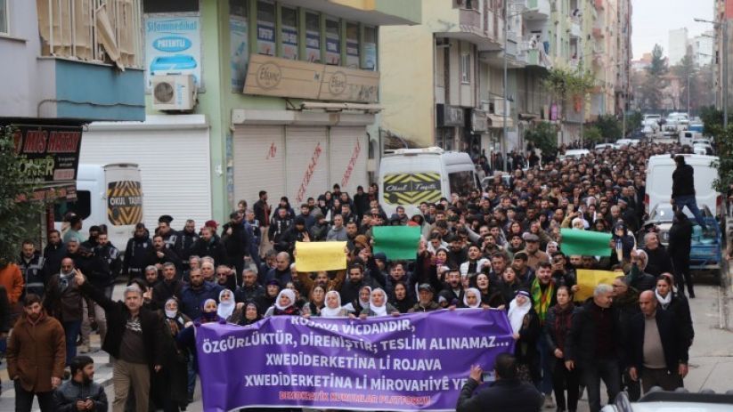 Hevserokê DEM Partiyê yê Mêrdînê Nîhat Gokalp jî got: “Gelê me yê Rojava bi qehremanî li ber xwe dide. Yên bi serê dinyayê ve bûne bela, ji hêla ciwan û jinên kurd ve hatin tunekirin. Tevî vê jî hêzên emperyal naxwazin kurd li ser xaka xwe xwedî maf bin. Lêbelê gelê kurd bibiryar e û bedela wê çi jî be dê di vê sedsalê de azad bibin û bi ser kevin. Bila dost û dijmin her kes bizane ku em ê gelê xwe yê Rojava bi tenê nehêlin. Bila her kes bizane ku gelê kurd yek beden, yek nasname, yek ziman e. Bila dewleta Tirk bi destê DAIŞê negire. Banga me jui bo dewleta Tirk û birêz Erdogan ew e ku li gorî ruhê pêvajoyê tevbigerin.”