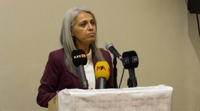 Hevseroka Giştî ya Partiya Herêmên Demokratîk (DBP) Çîgdem Kiliçgun Uçar di komxebatê de axivî û anî ziman ku hewceye ew li ser ‘Çima pêvajo hê jî civakî nebûyê’ nîqaş bikin û got: “Piştgiriya ji bo pêvajoyê zêdeyî ji sedî 80î ye. Lê baweriya civakê bi desthilata AKPê tune ye. Divê em vê pêvajoyê civakî bikin. Dema civakî nebe desthilat dikare li gor berjewendiyên xwe tevbigere. Divê em pêvajoyê li benda desthilat nêhelin. Em hevsengiyeke nû ava bikin. Divê hemû alî xwe ji pêvajoyê berpirsyar bibinin. Yanî di nav pêkhateyên me de kesên ku zimanê wan ê dayikê kurdî ye jî hene. An zaravayê kirmanckî an jî kurmancî. Lê em qet nabînin ku ew bi zaravayê xwe diaxivin. Weke ku tenê endamên Tevgera Siyasî ya Kurd dikarin biaxivin tevdigerin. Na bila ew jî biaxivin. Ew yek jî nişan dide ku çima em ew qas tenê ne. ”