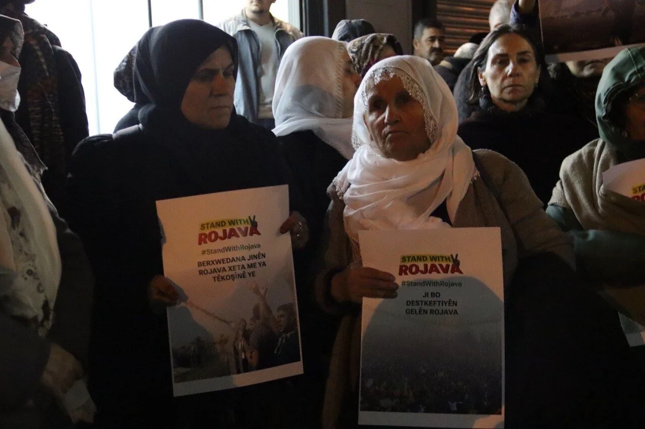 Meclisa Dayikên Aştiyê ya Îzmîrê li dijî êrîşên li ser taxên Şêxmeqsûd û Eşrefiye yên Helebê li rêxistina  DEM Partî ya Bayrakliyê daxuyanî dan û ber bi Enqereyê ve bi rê ketin. Di daxuyaniyê de dirûşmeyên “Bijî berxwedana Rojava”, “Kurdistan wê ji faşîstan re bibe goristan”, “Bijî Serok Apo” hatin berzkirin. Tevî nûnerên saziyên sivîl, gelek kes tevlî daxuyaniyê û oxirkirina dayikan bûn. Daxuyanî ji aliyê endamên Dayikên Aştiyê ya Îzmîrê Behiye Yalçin û Peyruze Kurt ve hat xwendin.