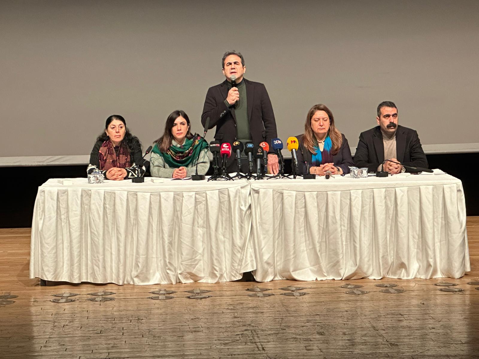 Hevserokê DEM Partiya Amedê Abbas Şahîn di civînê de axivî û got: “Hevalên me li qadan gelek xebitîn û xebateke zêde meşandin. Dema gotûbehs dibe birêz Ocalan hemû hevalên me li qadan bûn û bêyî li malên xwe rûnin xebat meşandin. Ji bo ku mitîng were kirin şert û merc nebaş bûn me mitîng betal kir. Li Amedê mala ku neçûnê neman. Ne tenê li Amedê rojeva hemû Kurdistanê bû mitîng û azadiya birêz Ocalan hevalên me danîn holê ku ji bo birêz Ocalan dikarin her tiştî bikin. Her kes seferber bûn. Niha em dikarin nava pêvajoyeke nû divê dîsa em mal bi mal kolan bi kolan dîsa bigerin. Çawa ku birêz Ocalan 26 sal in dixebite em ê jî ji bo azadiya wî bixebitin. Em ji nû ve di 25ê çile de saet di 13:00an de li Qada Îstasyonê mitînga xwe li dar bixin. Piştî daxuyaniyê em ê dest bi xebatên xwe bikin.”