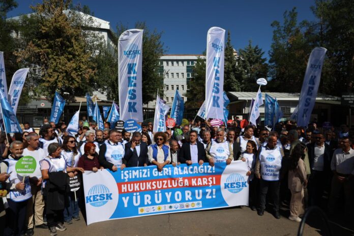 Piştî daxuyaniyê Hevserokê Giştî yê KESKê Ahmet Karagoz axivî û diyar kir ku wan heta îro dengê xwe bilind kir lê nehat bîhistin û wiha axivî: “Gelek hevalên me hatin îxrackirin. Lê sedem nehat gotin. Em li vir dibêjin ji bo ku em li dijî şer in, ligel gelê kurd in, ji bo faaliyetên sendîkayî em hatin îxrackirin. Gotin qey dê KESK bitirse, lê li pêşiya wan KESK heye, îro ev dîmen vê nîşan dide.”
