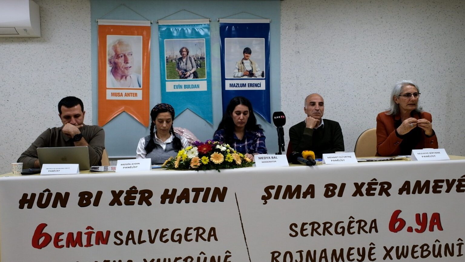 Destpêkê siyasetmedar Mulkiye Bîrtane li ser mijara “Ziman û pêwendiya ziman a bi çapemeniyê re” axivî. Mulkiye Bîrtane diyar kir ku ziman nasname ye, hebûn e û wiha got: “Bîra me ya kolektif a gelekî, a neteweyî li ser ziman bi pêş dikeve. Heke ziman rast neyê axaftin nikarin hest û ramanên xwe jî baş bînin ziman. Heke gelek an netewek têk bibin di serî de ji zimanî dest pê dikin. Qedexeya sereke li ser zimanê Kurdî ye. Pişt re nasname te jî tê înkarkirin. Zimanê mirov winda bibe mirov jî ji holê radibe.”