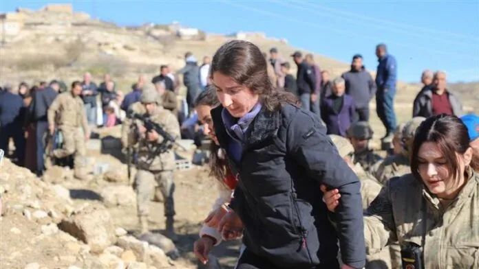 Rûkiye Fîdan ku bi wesayîta rîngê anîn goristana gund, cendirmeyên jin ketin bin milê wê û destekê wê jî bi destê cendirmeyeke jin hat kelemçekirin. Rûkiye Fîdan bi heman awayî anîn cem xizmên wê û li vir kêliyên hestiyar hatin jiyîn. Piştî Rûkiye Fîdan anîn cihê şînê, li wir kelemçeyên destên wê jê hatin derxistin. Lêbelê vêcarê jî cendirmeyan dora wê girtin û neçar ma ku di bin dorpêça cendirmeyan de sersaxiyan qebûl bike.