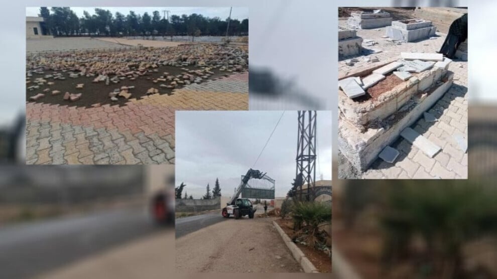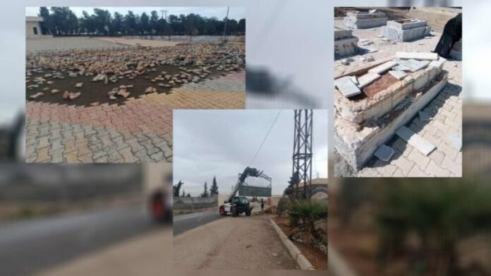 Artêşa tirk û çeteyên wê ku 8ê kanûna 2024an bajarê Minbicê dagir kir, careke din Şehîdgeha Şehîdan a bajêr xirab kir.