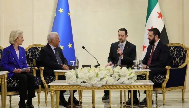 Şandeya Konseya Ewropa û komîsyona Ewropayê li Şamê serdana Serokê Demkî Ahmet El Şera kirin. Di malpera Serokkomariyê ya Sûriyeyê de hat diyar kirin ku Serokê Hikûmeta Demkî Ahmet El Şera li Şamê li Qesra Gel Serokê Konseya Ewropayê Antonio Costa û Serokê Komîsyona Ewropayê Ursula von der Leyen şandeya li gel wan pêşwazî kirine.