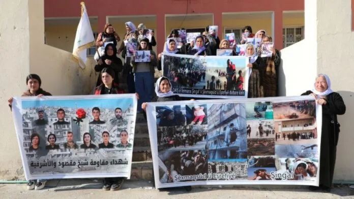 Tevgera Azadiya Jinên Êzidî (TAJÊ) li mekteba sor a li navenda Şengalê daxuyaniyek da. Di daxuyaniyê de êrîşên qirkirinê yên çeteyên dawleta Tirk û HTŞê yên li ser taxên Şêx Meqsûd û Eşrefiyên yên Helebê bi tûndî hatin şermezarkirin û bang li raya giştî û mirovahiya xwedî wîjdan hate kirin li hemberî vê hovîtiya ku li dijî gelê Şêx Meqsûd û Eşrefiyê tê kirin dawî li bêdengiya xwe bîne.