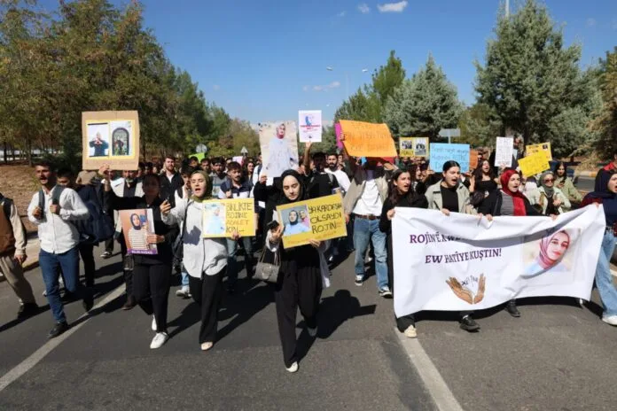 Bi pêşengiya Xeta Jinê, ji ber Fakulteya Fenê heta Fakulteya Perwerdeyê ya Zanîngeha Dîcleyê, ji bo Rojîn Kabaîş meş hat lidarxistin. Gelek ciwan û malbata Rojîn Kabaîş beşdarî meşê bûn û pankarta “Rojînê xwe nekuştiye, ew hatiye kuştin” vekirin. Dowizên “Jin Jiyan Azadî”, “ATK kiryaran eşkere bike”, “Qêrîna Rojînê wê bêdengiyê hişyar bike” hatin hildan û dirûşmên “Ev ne întîxar e, cinayet e”, “Jin Jiyan Azadî”, “Ji bo Rojînê edalet ji bo her kesî edalet”, “Rektor, hesa bide” hatin berzkirin.